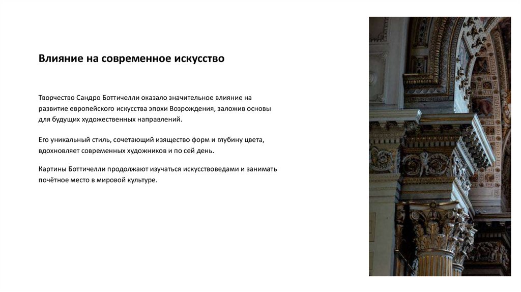 Влияние на современное искусствоТворчество Сандро Боттичелли оказало значительное влияние на