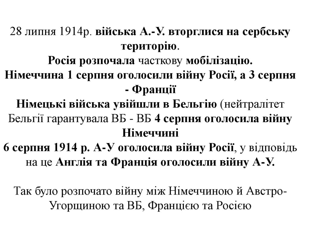 Так було розпочато війну між Німеччиною й АвстроУгорщиною та ВБ, Францією та Росією