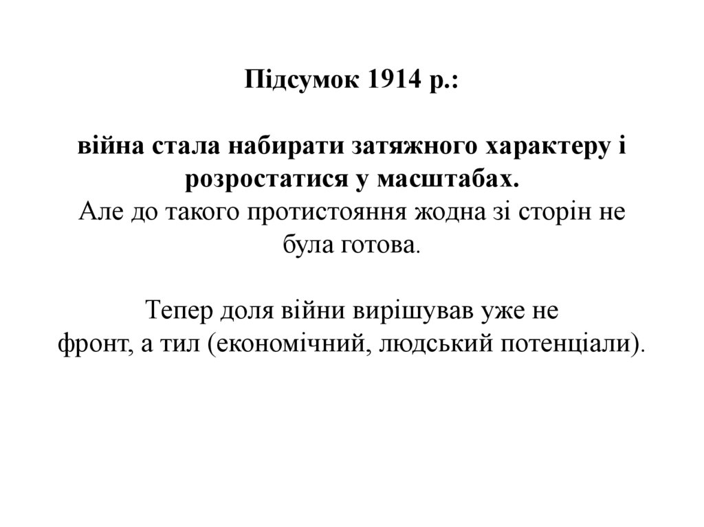 Підсумок 1914 р.:війна стала набирати затяжного характеру і