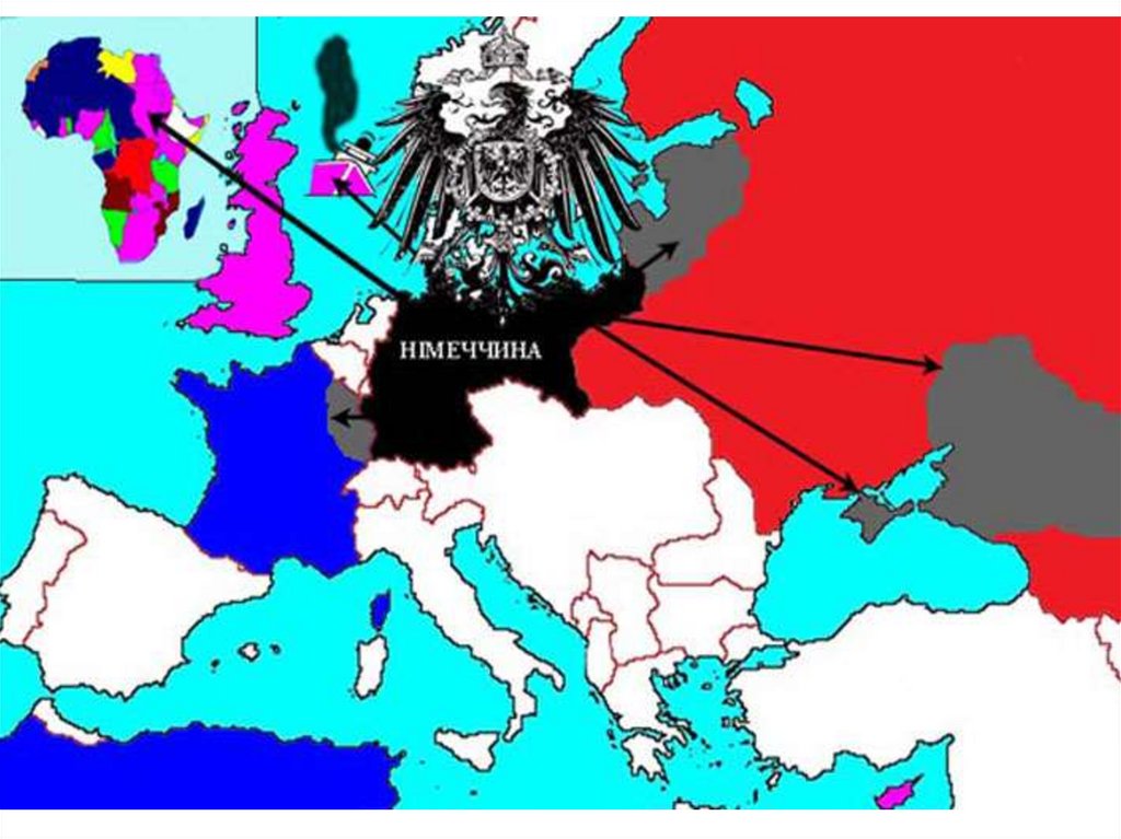 6. Німеччина прагнула: • Переділу колоніальних володінь В.Б., Франції, Бельгії на свою користь. • Установлення панування в Європі
