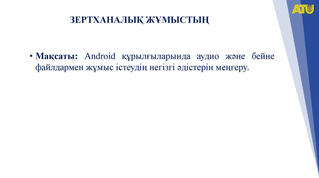 ЗЕРТХАНАЛЫҚ ЖҰМЫСТЫҢ• Мақсаты: Android құрылғыларында аудио және бейне
