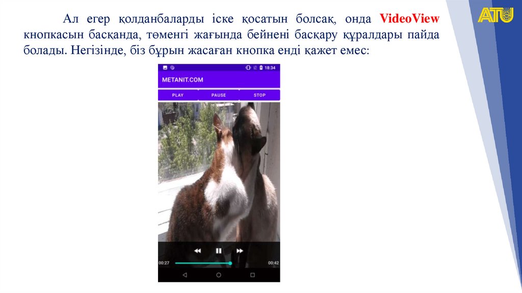 Ал егер қолданбаларды іске қосатын болсақ, онда VideoViewкнопкасын басқанда, төменгі жағында бейнені басқару құралдары пайда