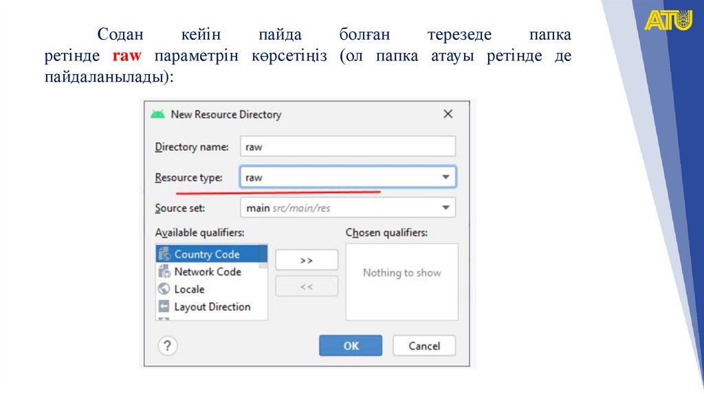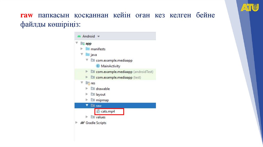 жобадағы res/raw қалтасына орналастырылады. Әдепкі бойынша
