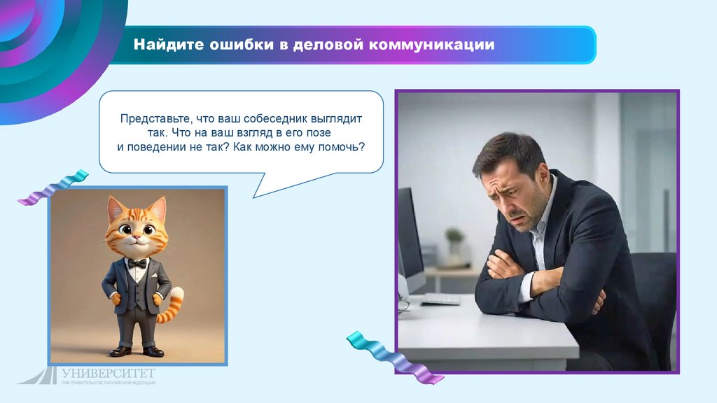 Найдите ошибки в деловой коммуникацииПредставьте, что ваш собеседник выглядит
