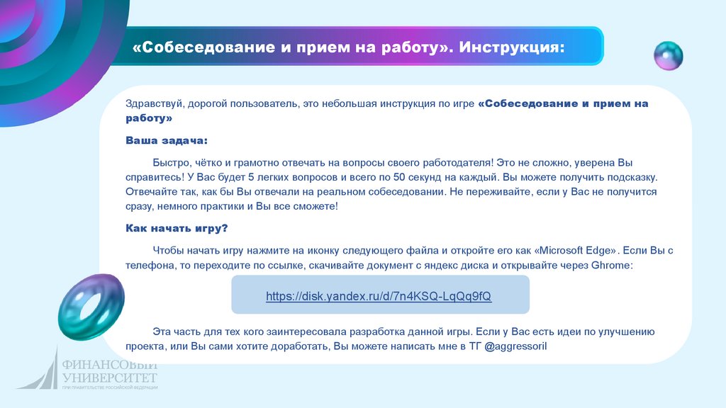«Собеседование и прием на работу». Инструкция:Здравствуй, дорогой пользователь, это небольшая инструкция по игре «Собеседование и прием на