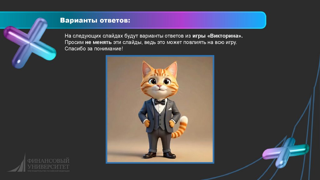Варианты ответов:На следующих слайдах будут варианты ответов из игры «Викторина».