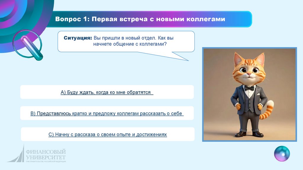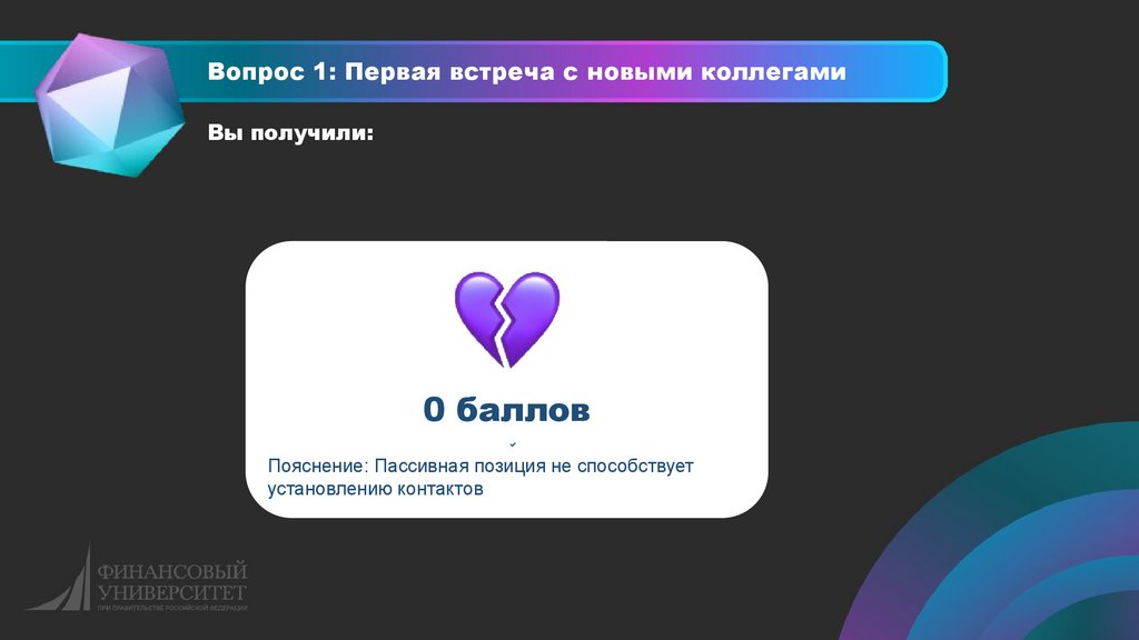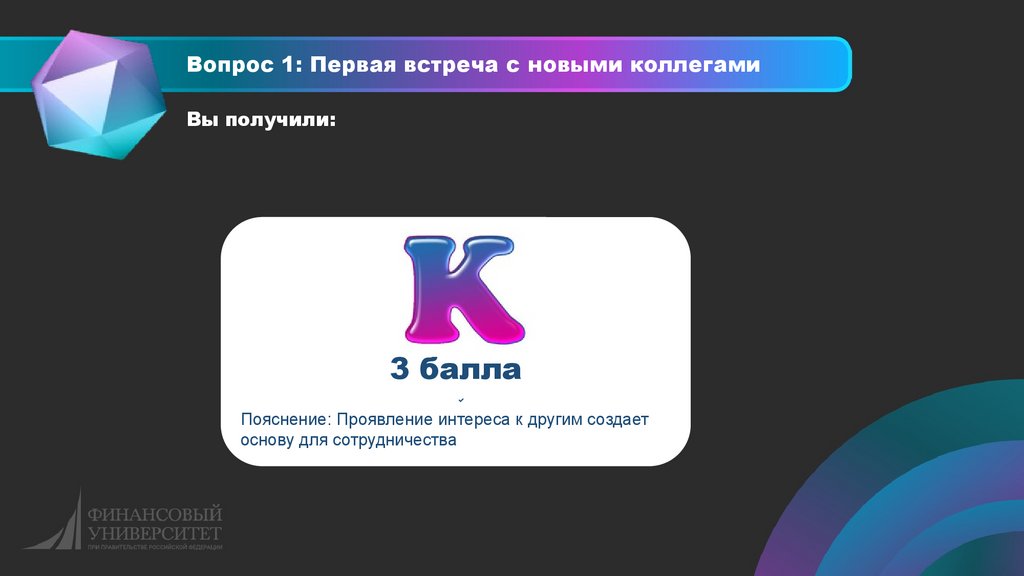 Вопрос 1: Первая встреча с новыми коллегамиВы получили: