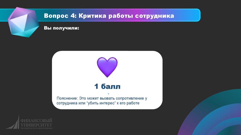 Вопрос 4: Критика работы сотрудникаВы получили: