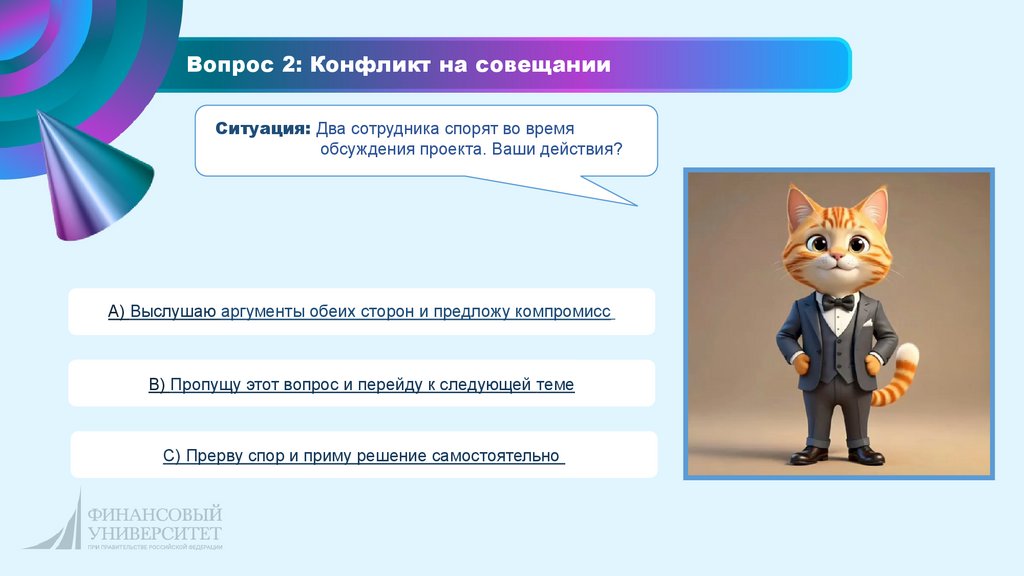 Вопрос 2: Конфликт на совещанииСитуация: Два сотрудника спорят во время