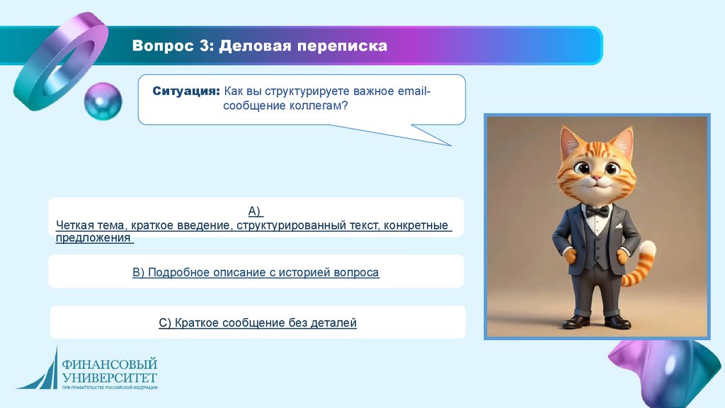Вопрос 3: Деловая перепискаСитуация: Как вы структурируете важное emailcообщение коллегам?
