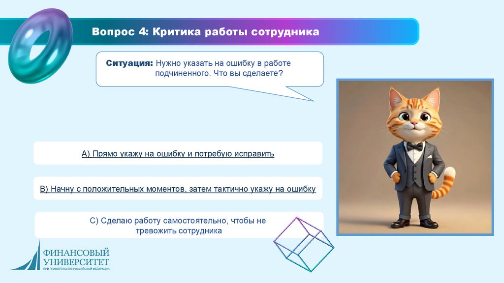 Вопрос 4: Критика работы сотрудникаСитуация: Нужно указать на ошибку в работе