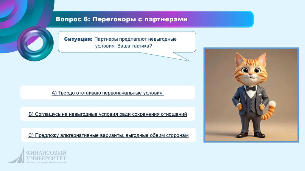 Вопрос 6: Переговоры с партнерамиСитуация: Партнеры предлагают невыгодные