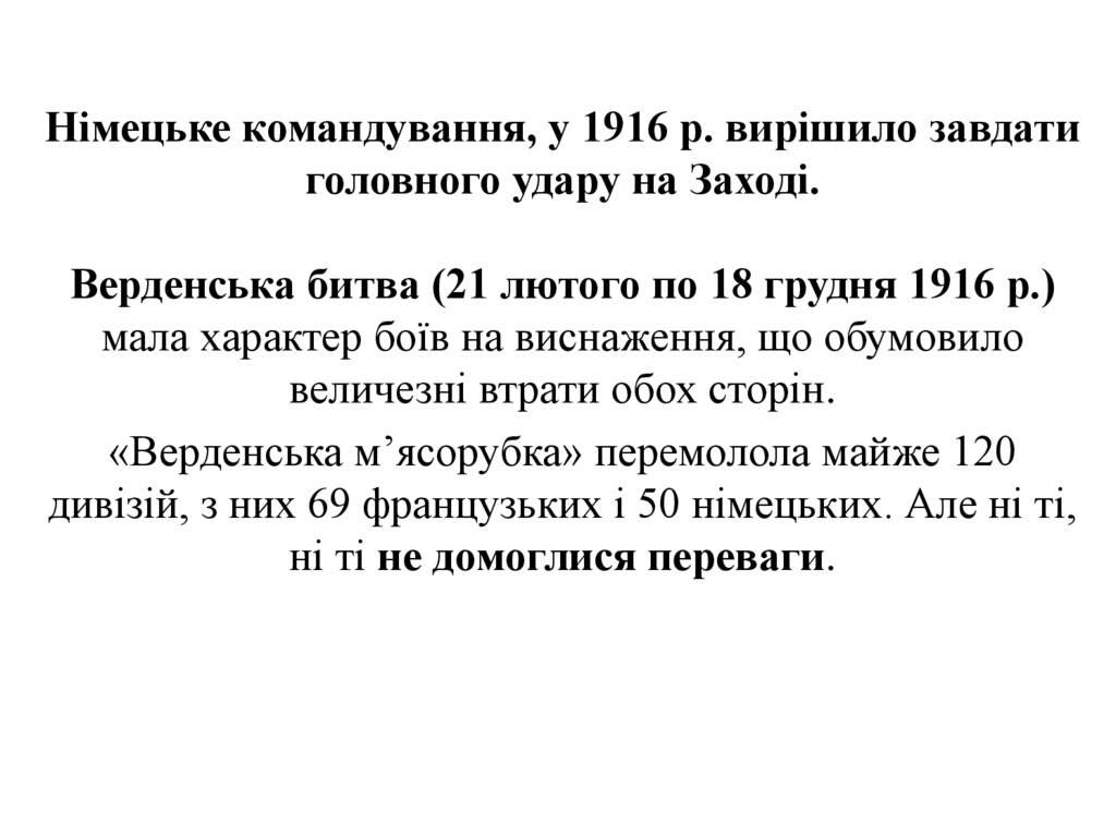 Німецьке командування, у 1916 р. вирішило завдатиголовного удару на Заході.