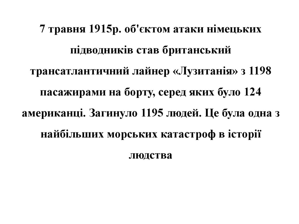 7 травня 1915р. об'єктом атаки німецькихпідводників став британський