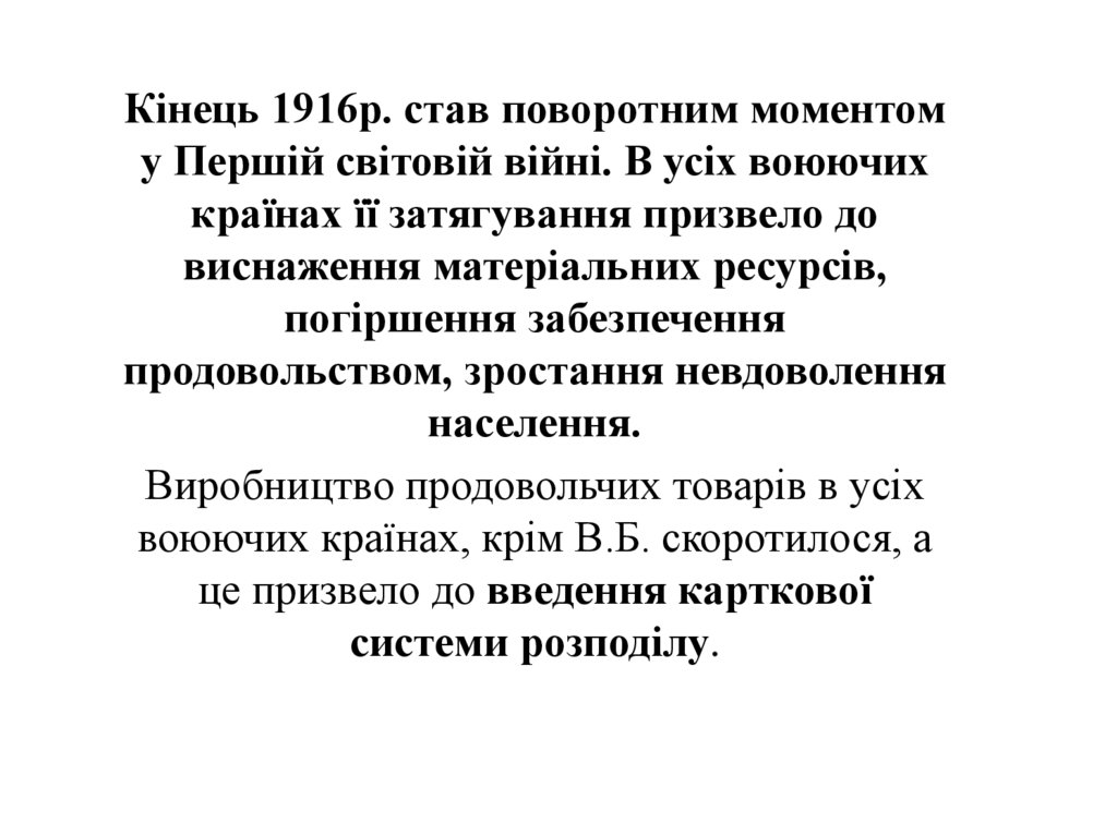Кінець 1916р. став поворотним моментому Першій світовій війні. В усіх воюючих