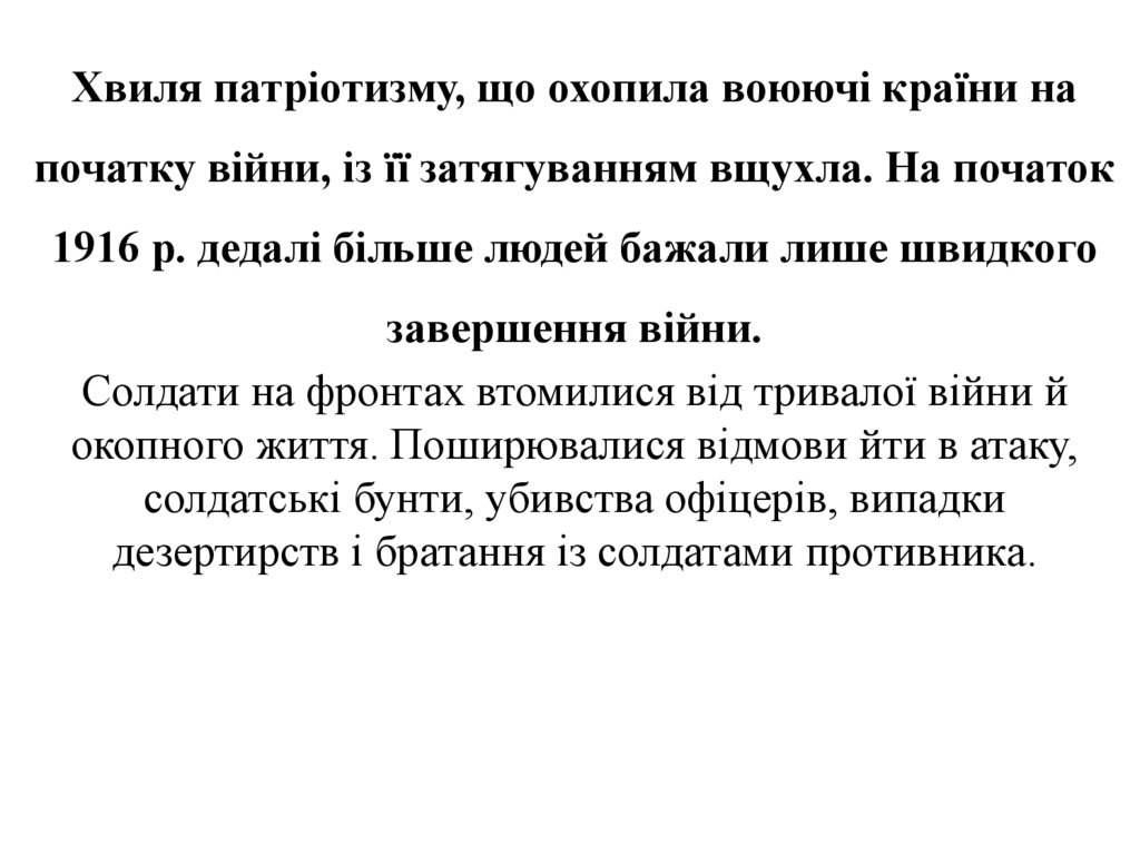 окопного життя. Поширювалися відмови йти в атаку,