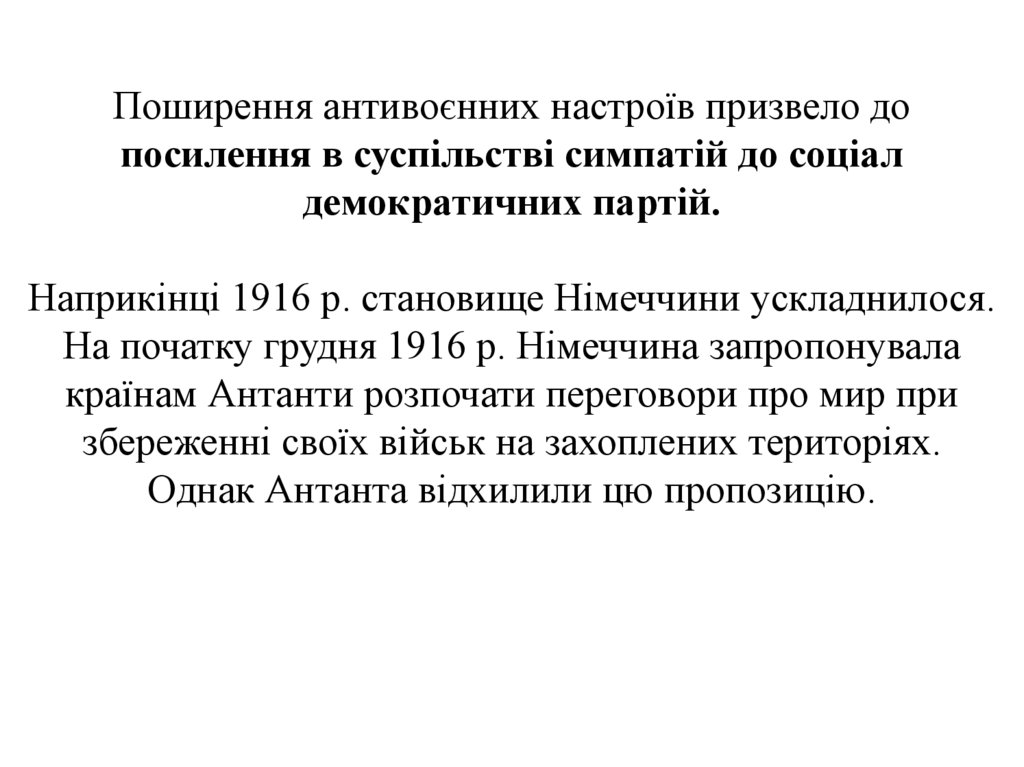 Поширення антивоєнних настроїв призвело допосилення в суспільстві симпатій до соціал