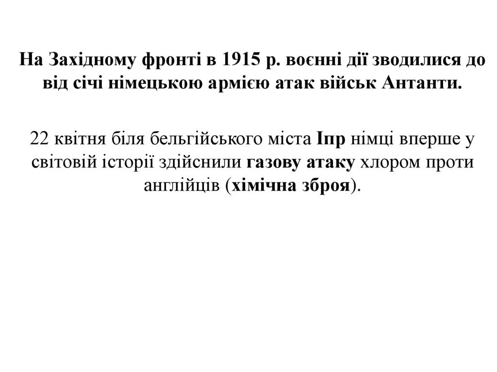На Західному фронті в 1915 р. воєнні дії зводилися довід січі німецькою армією атак військ Антанти.