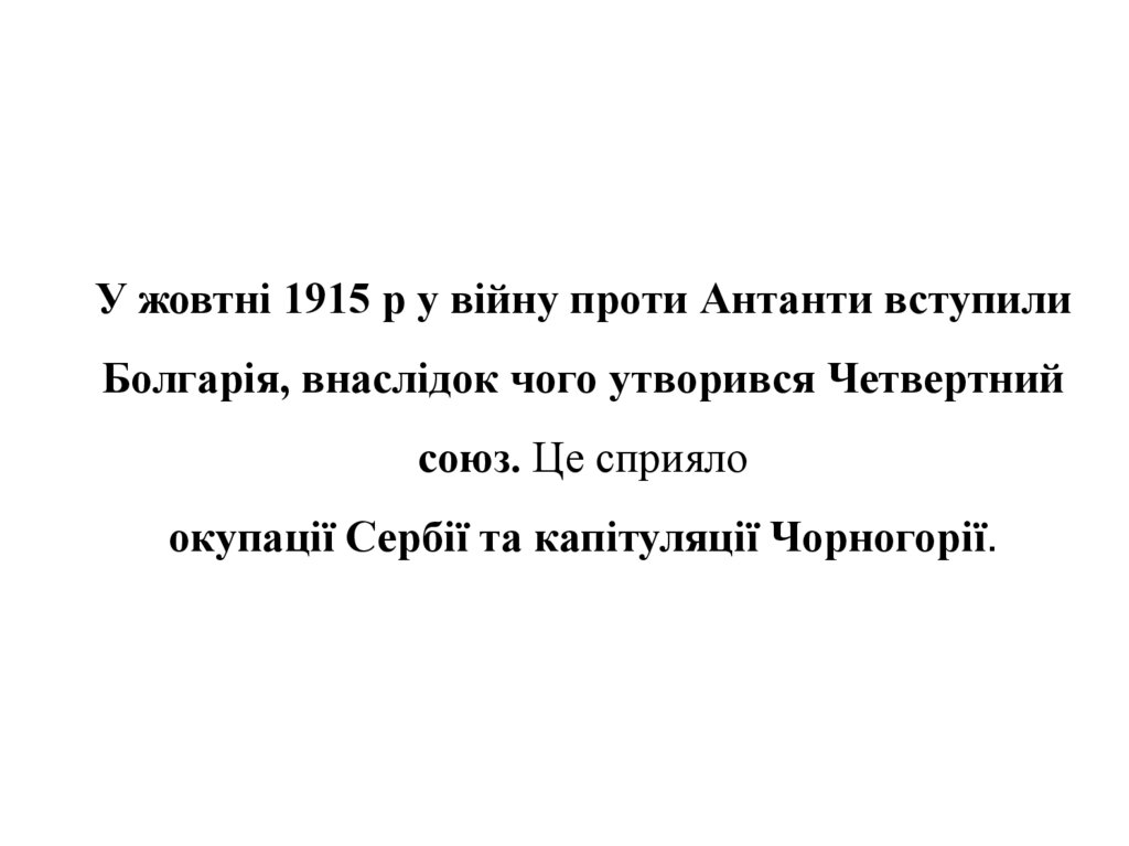 У жовтні 1915 р у війну проти Антанти вступилиБолгарія, внаслідок чого утворився Четвертний