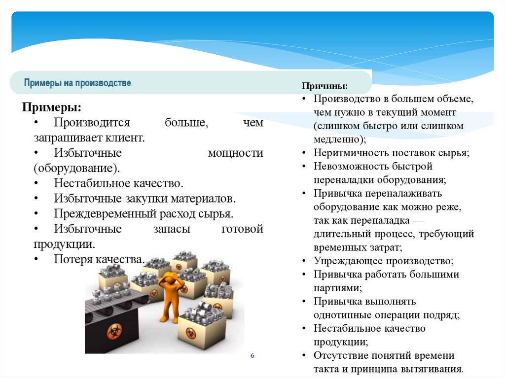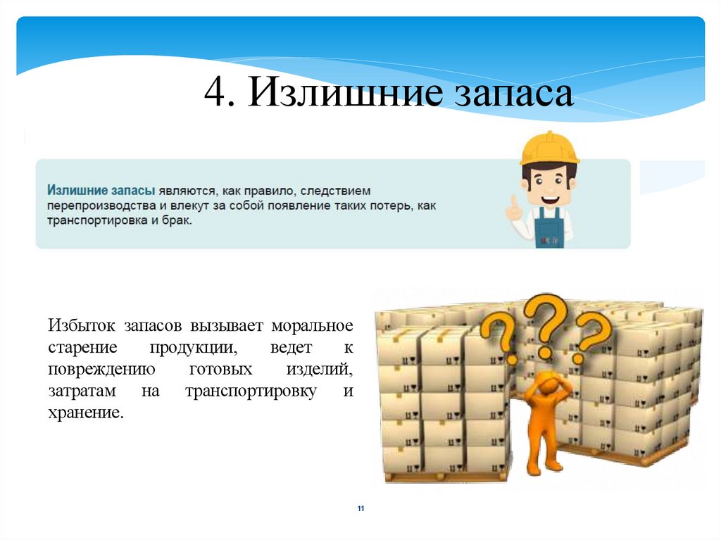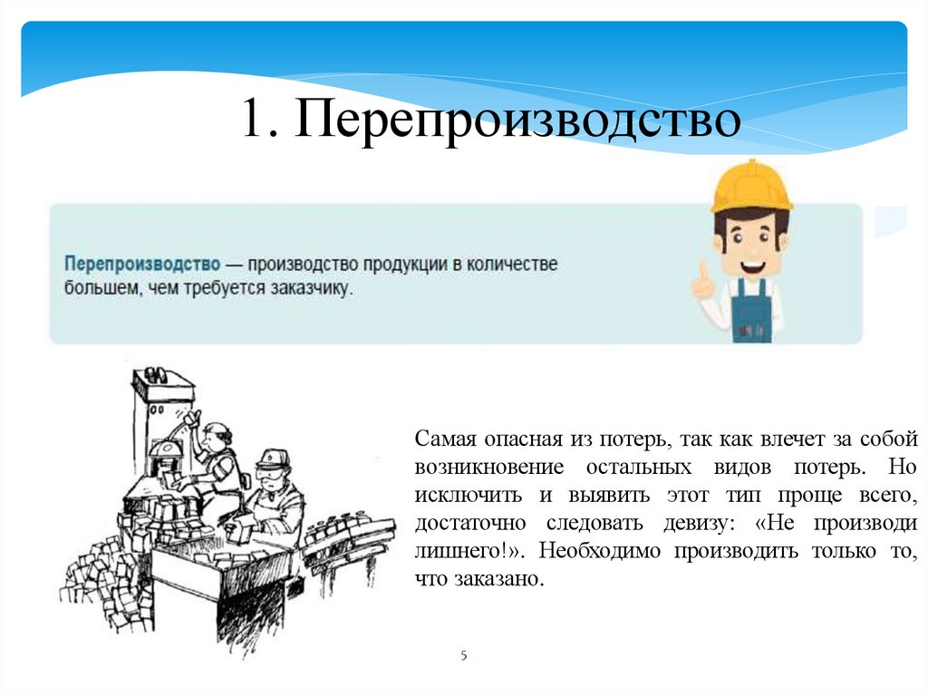 1. ПерепроизводствоСамая опасная из потерь, так как влечет за собой