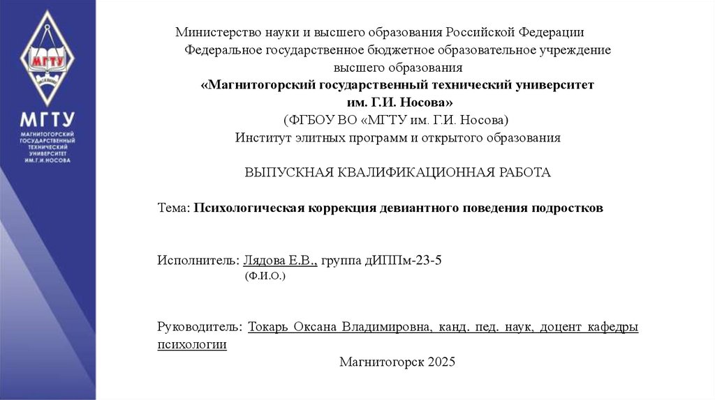 (ФГБОУ ВО «МГТУ им. Г.И. Носова)