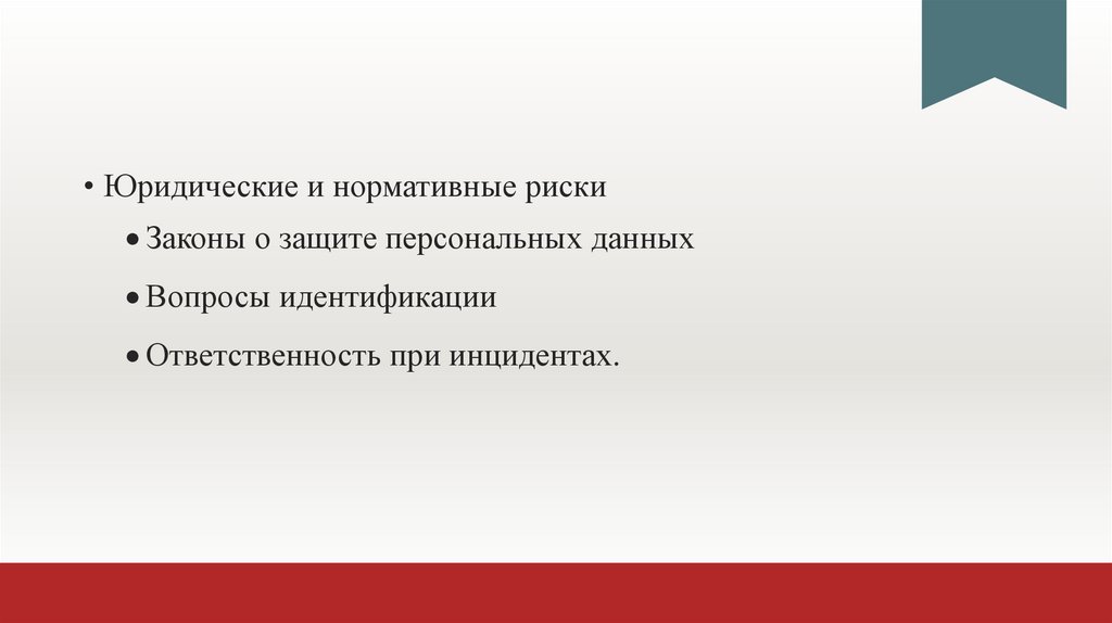 • Юридические и нормативные рискиЗаконы о защите персональных данных