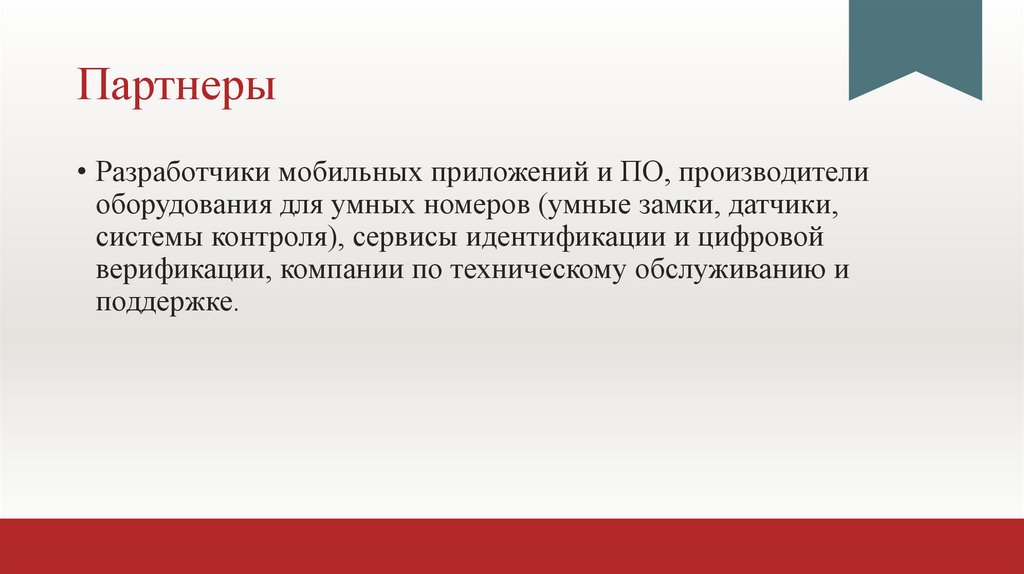Партнеры• Разработчики мобильных приложений и ПО, производители