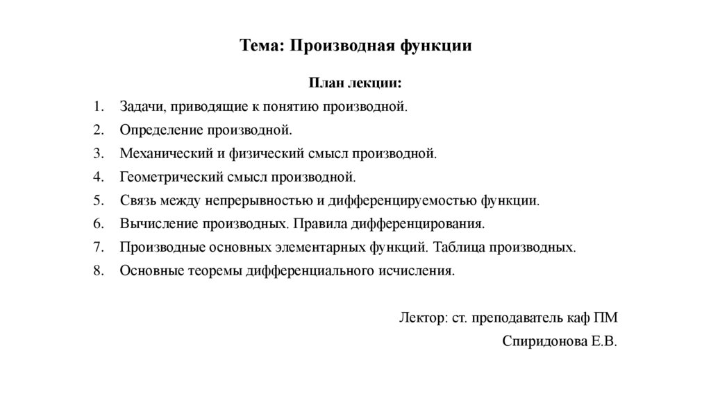 1. Тема: Производная функции