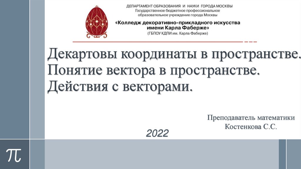 1. Декартовы координаты в пространстве. Понятие вектора в пространстве. Действия с векторами.