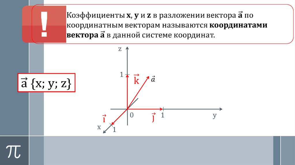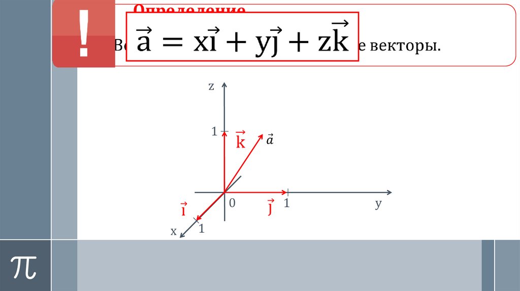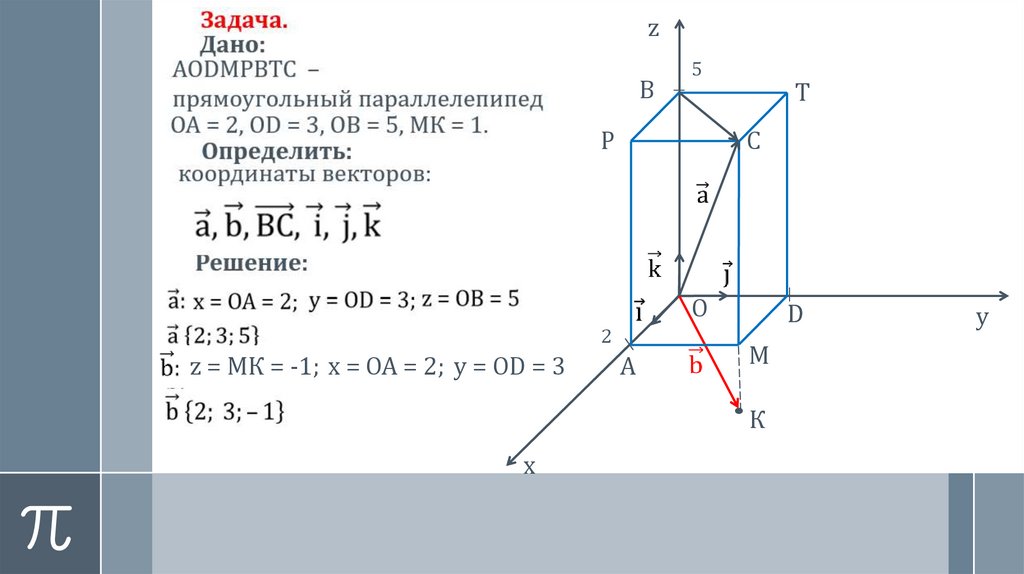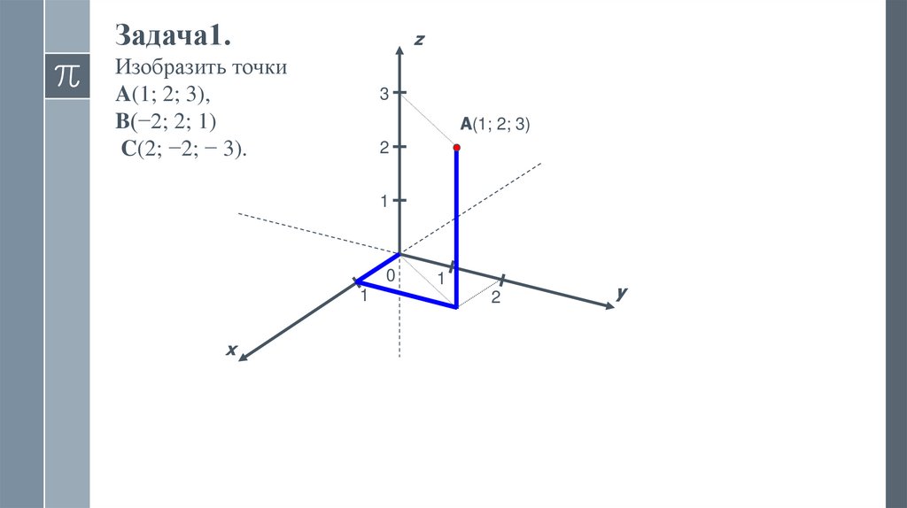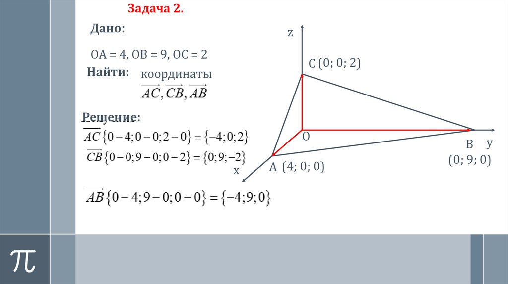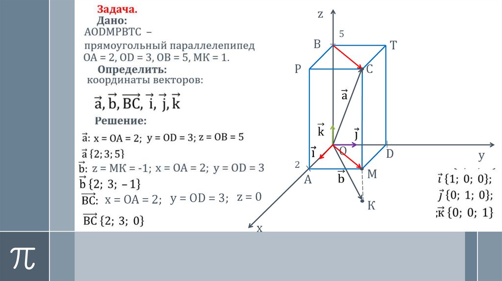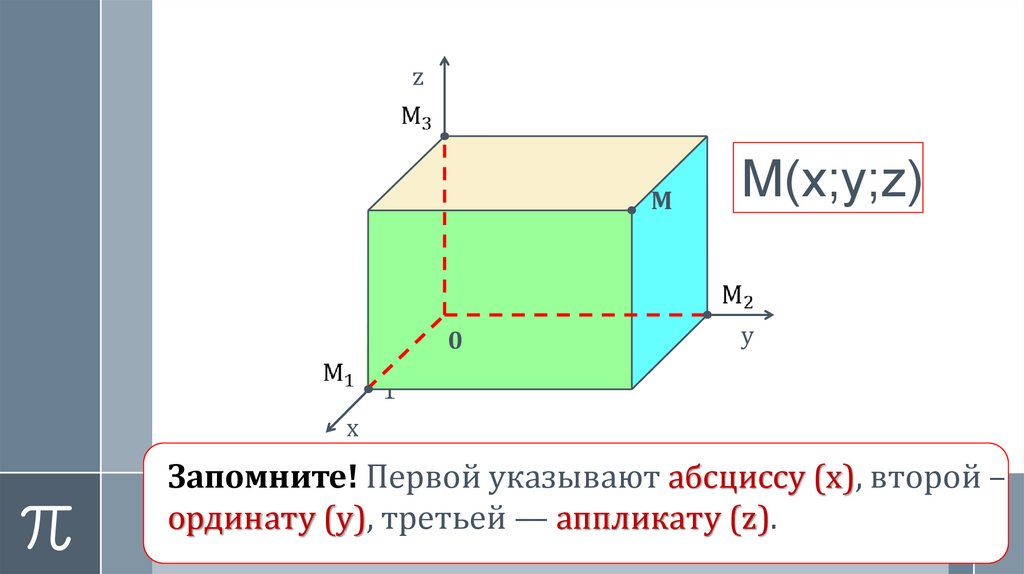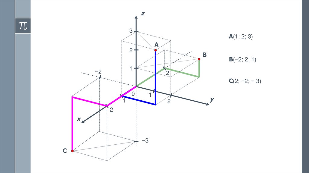 Прямоугольная система координат в пространстве образованатремя попарно перпендикулярными прямыми, с выбранными