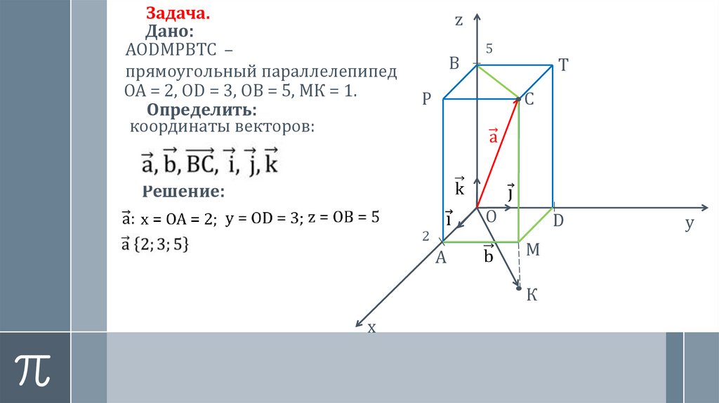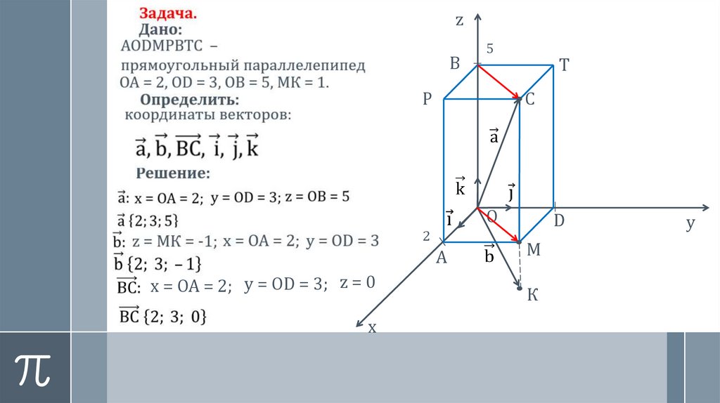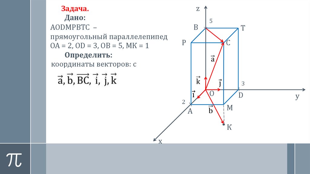 z = МК = -1; х = ОА = 2; у = ОD = 3