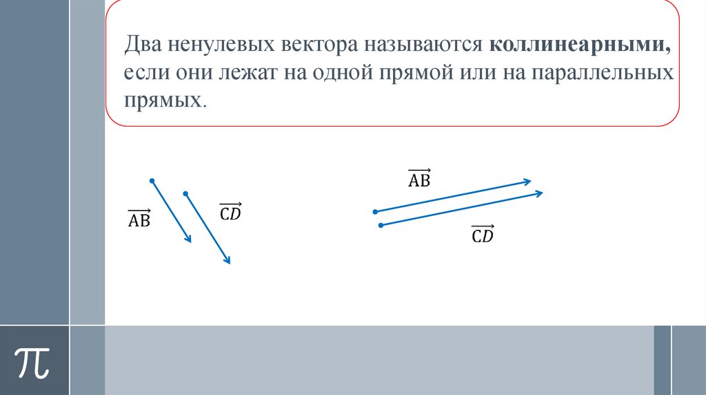 Два ненулевых вектора называются коллинеарными,если они лежат на одной прямой или на параллельных