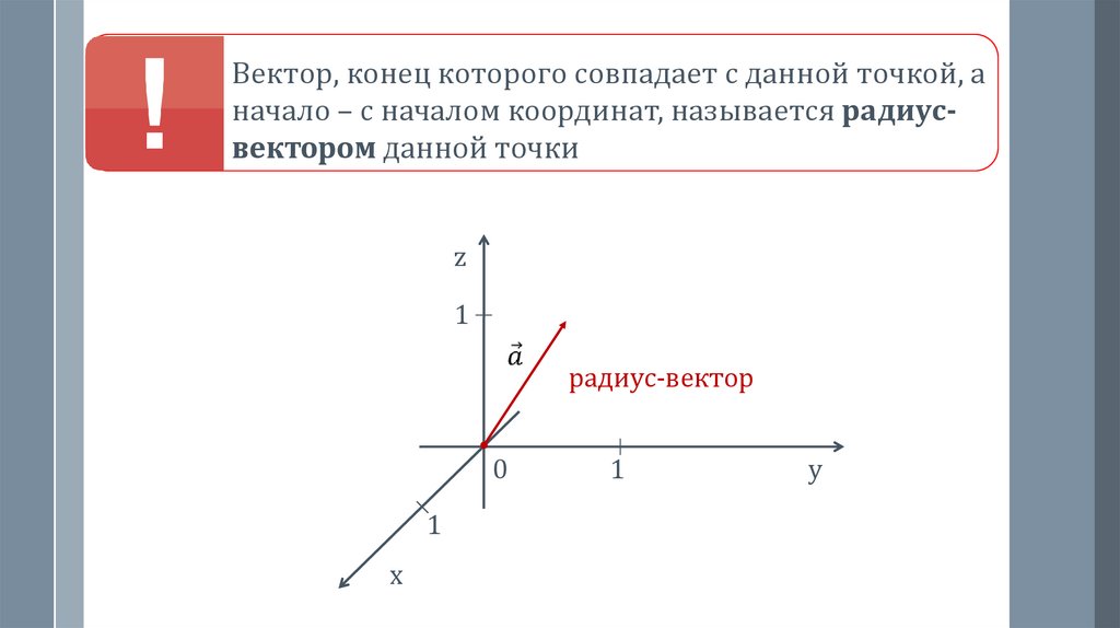 Вектор, конец которого совпадает с данной точкой, аначало – с началом координат, называется радиусвектором данной точки