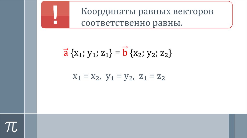 х₁ = х₂, у₁ = у₂, z₁ = z₂