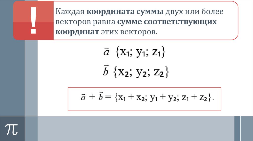 Каждая координата суммы двух или болеевекторов равна сумме соответствующих