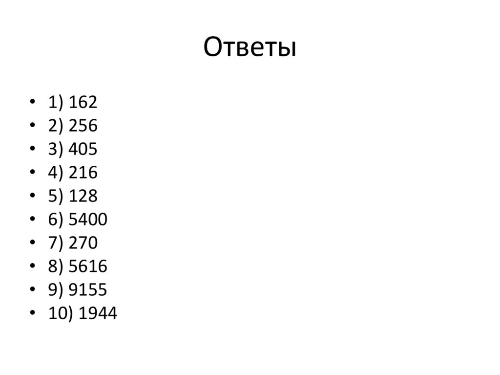 • Ответ: 2 * 3 * 3 * 3 * 3 = 162