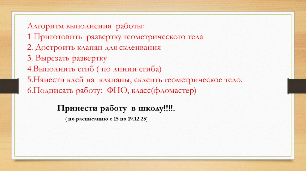 Алгоритм выполнения работы:1 Приготовить развертку геометрического тела