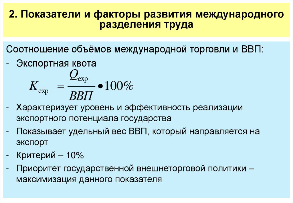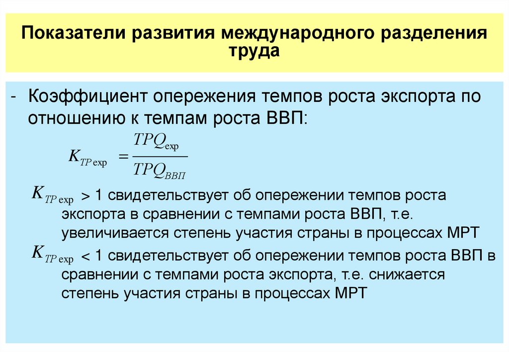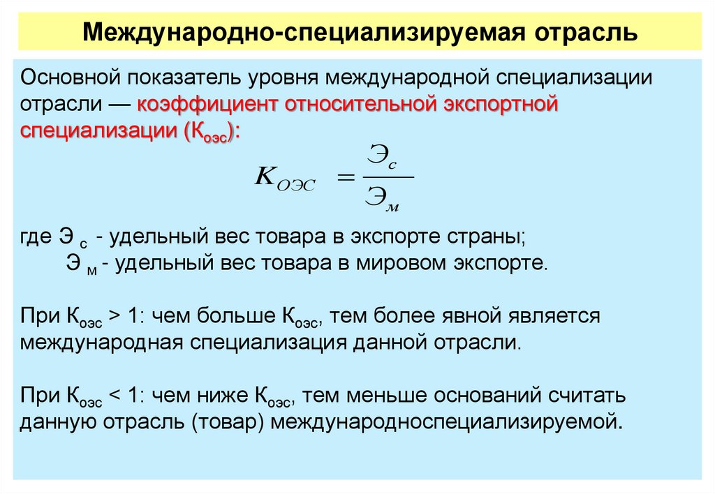 Международно-специализируемая отрасльОсновной показатель уровня международной специализации