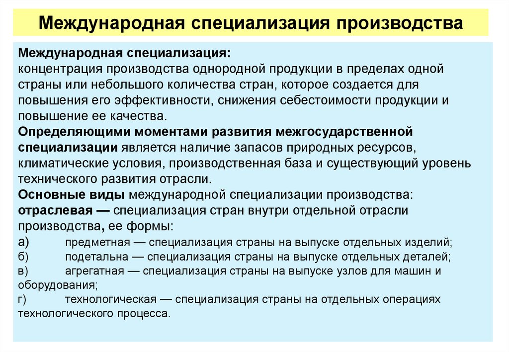 хозяйства (отраслевая специализация). Отсюда вытекает