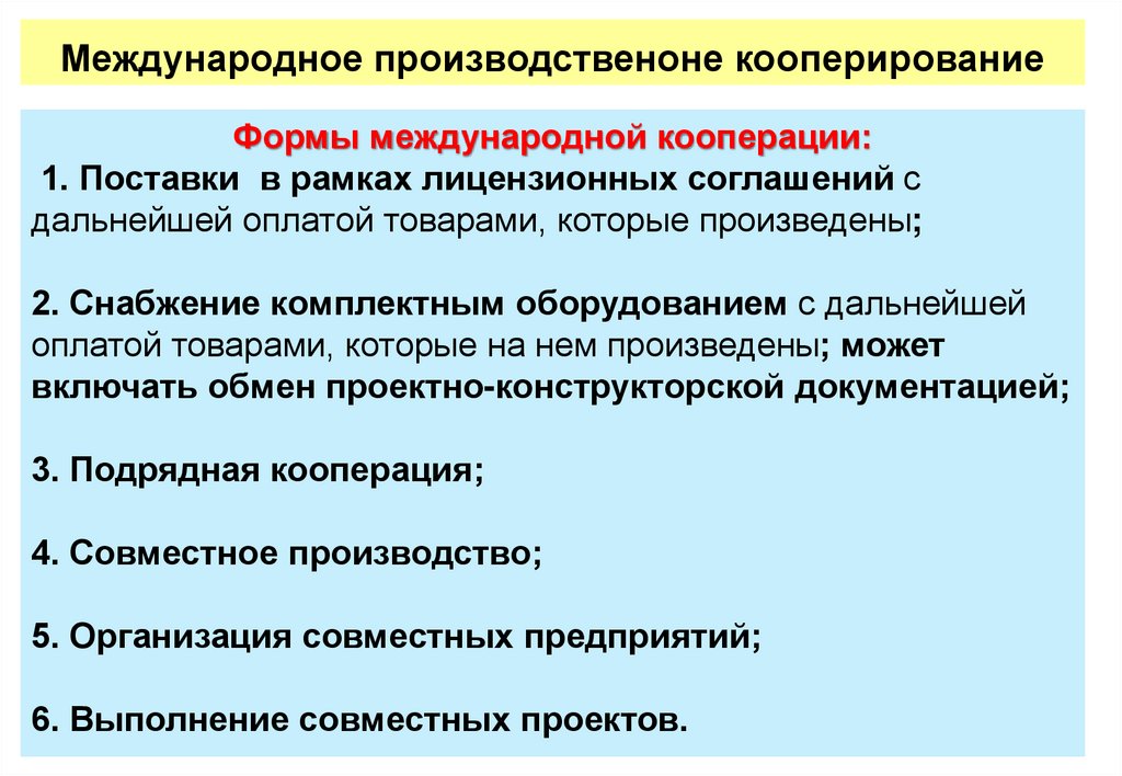 Международное производственное кооперирование1) производственно-технологическое сотрудничество, которое