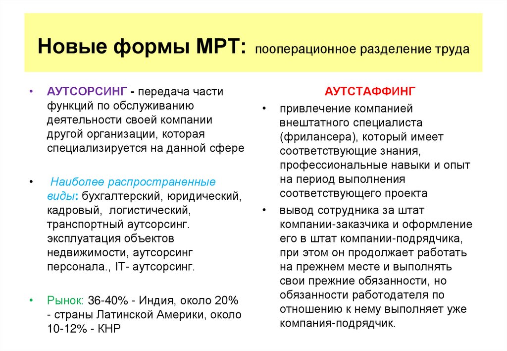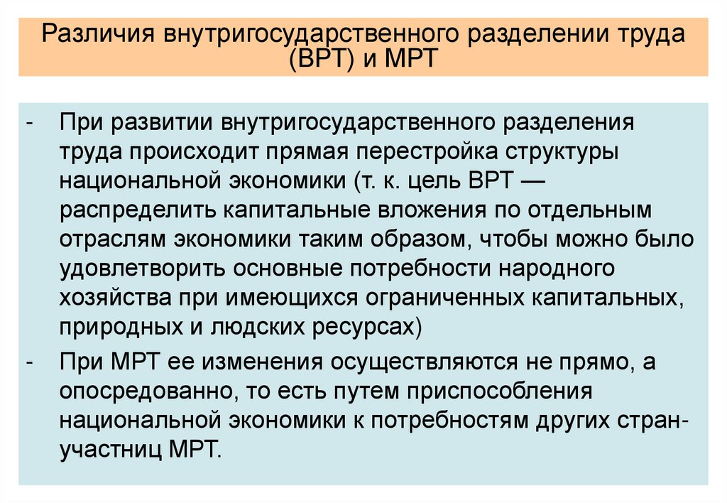Различия внутригосударственного разделении труда(ВРТ) и МРТ