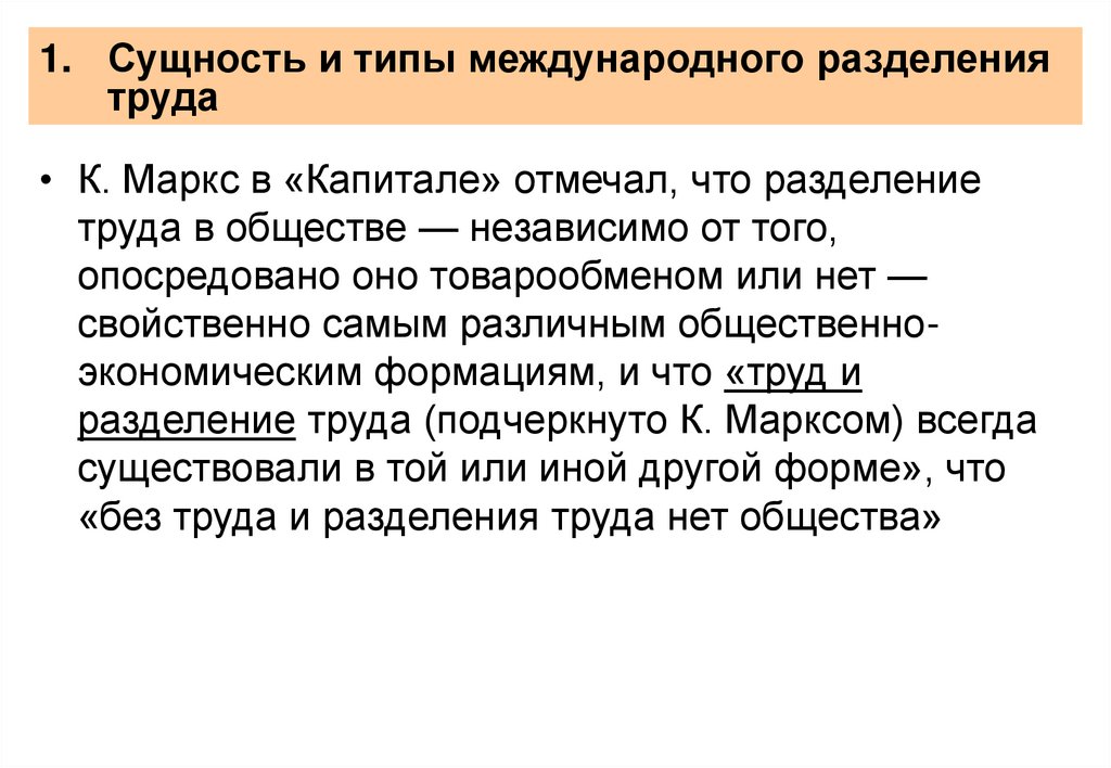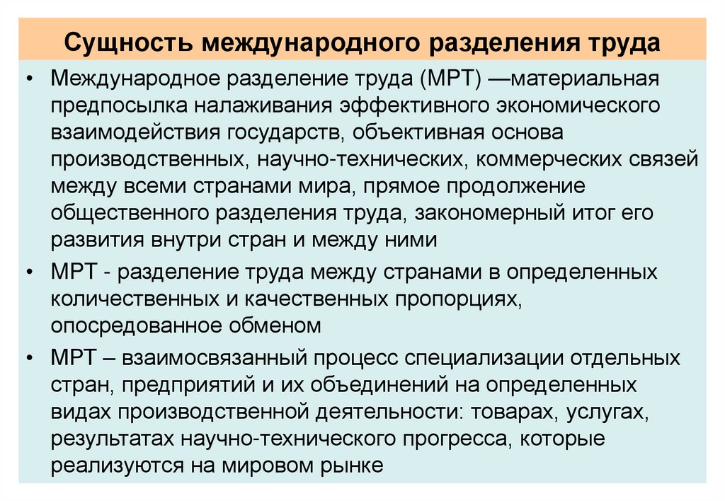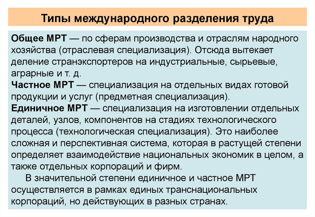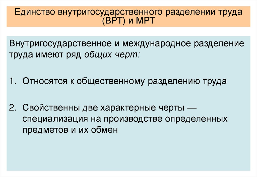 Единство внутригосударственного разделении труда(ВРТ) и МРТ