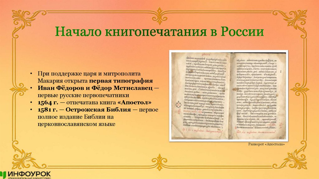 • При поддержке царя и митрополитаМакария открыта первая типография