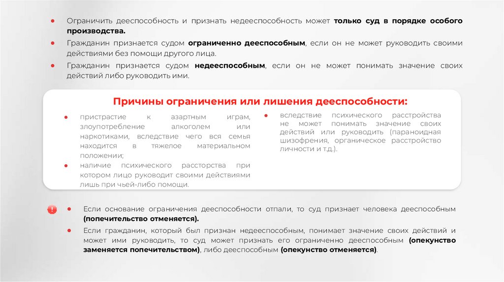 Ограничить дееспособность и признать недееспособность может только суд в порядке особого