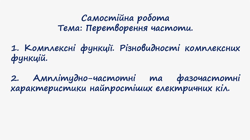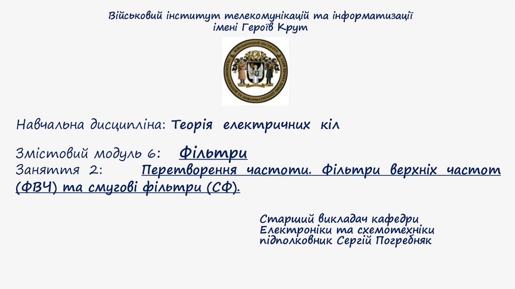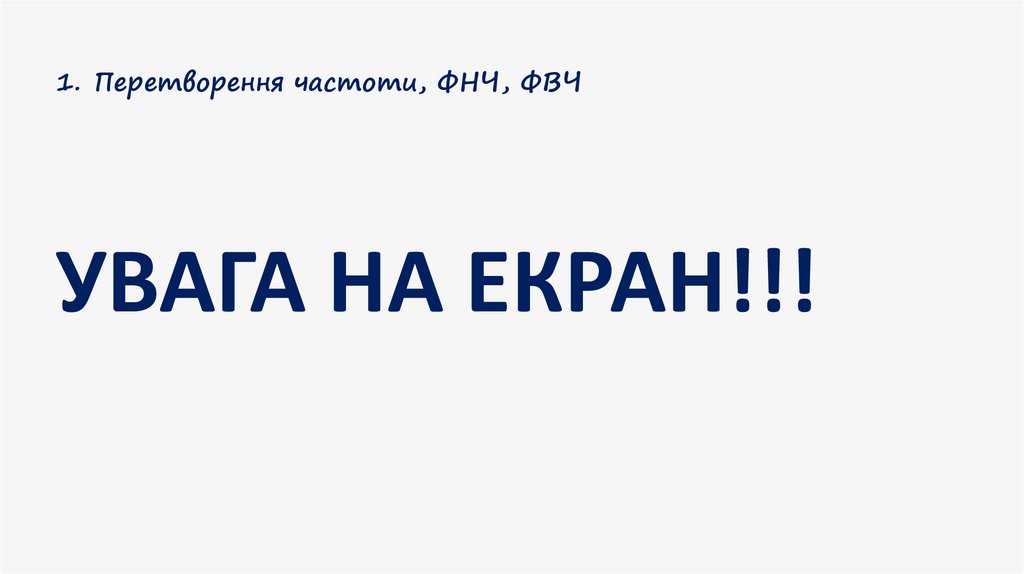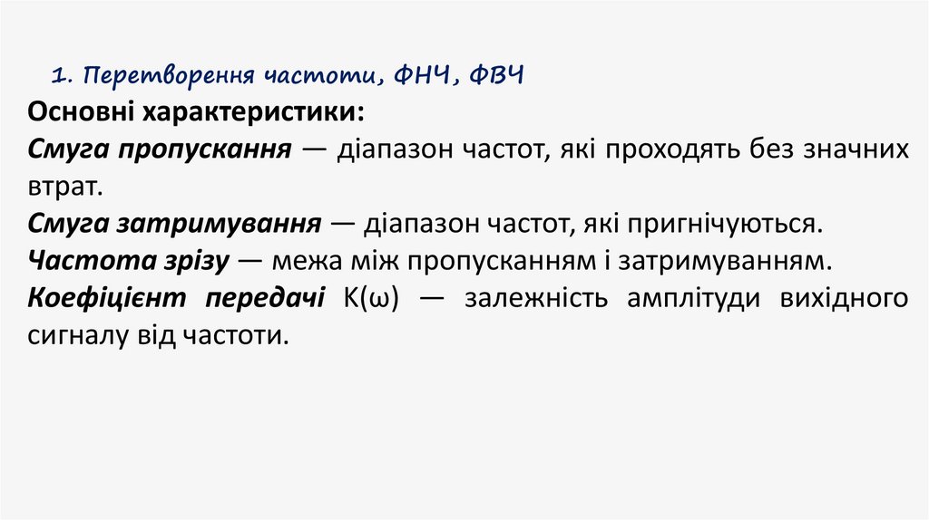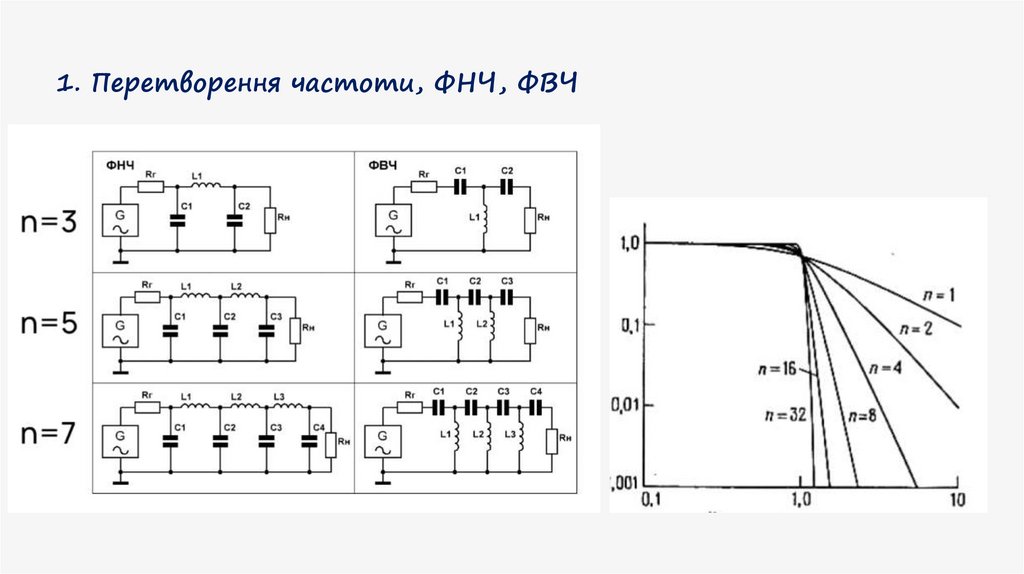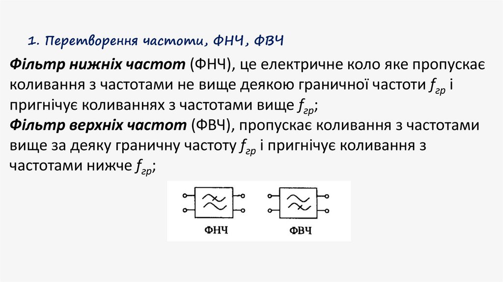 1. Перетворення частоти, ФНЧ, ФВЧФільтр нижніх частот (ФНЧ), це електричне коло яке пропускає