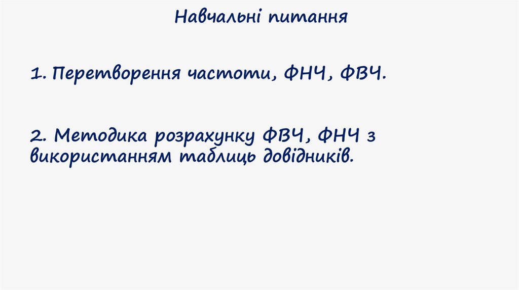 Навчальні питання1. Перетворення частоти, ФНЧ, ФВЧ.
