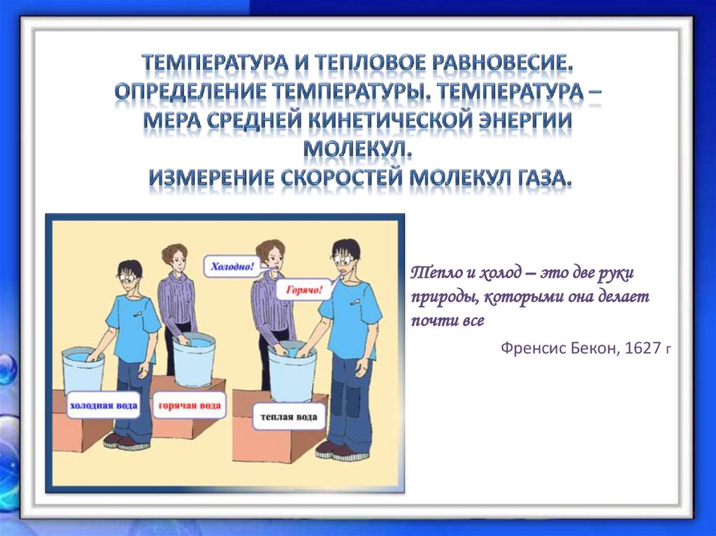 1. Температура и тепловое равновесие. Определение температуры. Температура – мера средней кинетической энергии молекул. Измерение