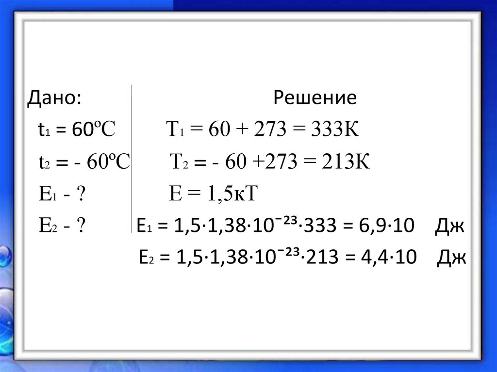Е2 = 1,5·1,38·10ˉ²³·213 = 4,4·10 Дж