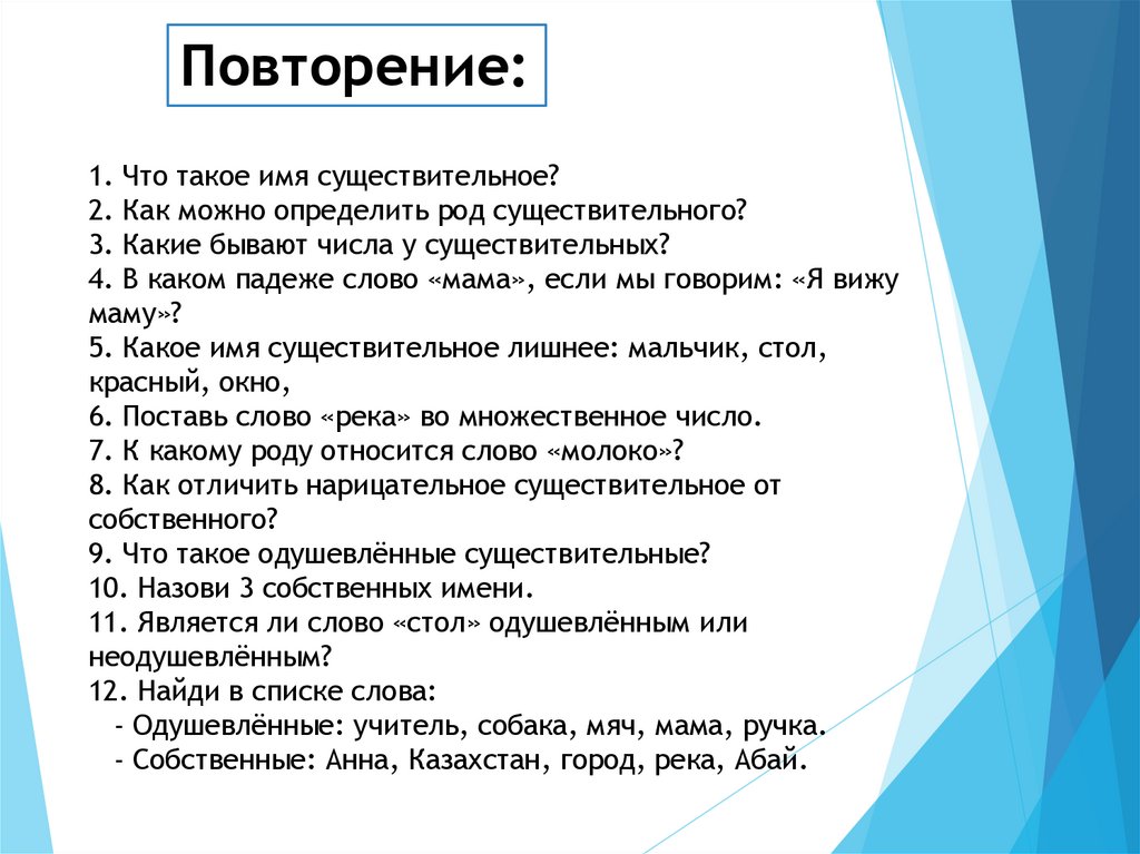 Повторение:1. Что такое имя существительное?