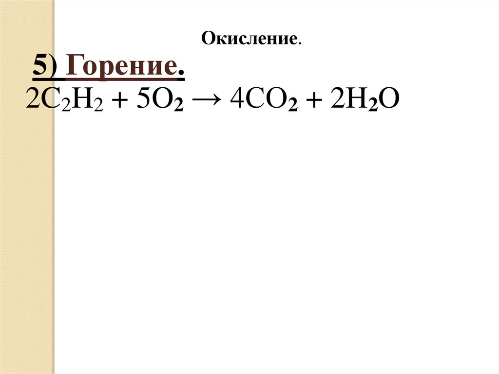 2C2H2 + 5O2 → 4CO2 + 2H2O